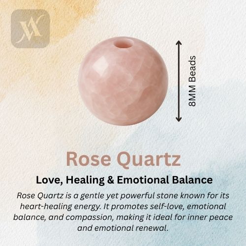 Stay open-hearted and serene with this soothing Rose Quartz bracelet, crafted from natural stones known for their gentle, rosy pink tones. Revered as the “Stone of Love,” Rose Quartz is a nurturing companion for promoting self-love, emotional healing, and harmonious relationships. It invites compassion, calms the mind, and gently dissolves emotional wounds, helping you stay centered and connected to your heart.